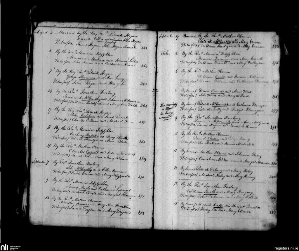 St. Michael's, Limerick city; County of Limerick; Diocese of Limerick. Marriages, Aug. 1828 to Oct. 1828