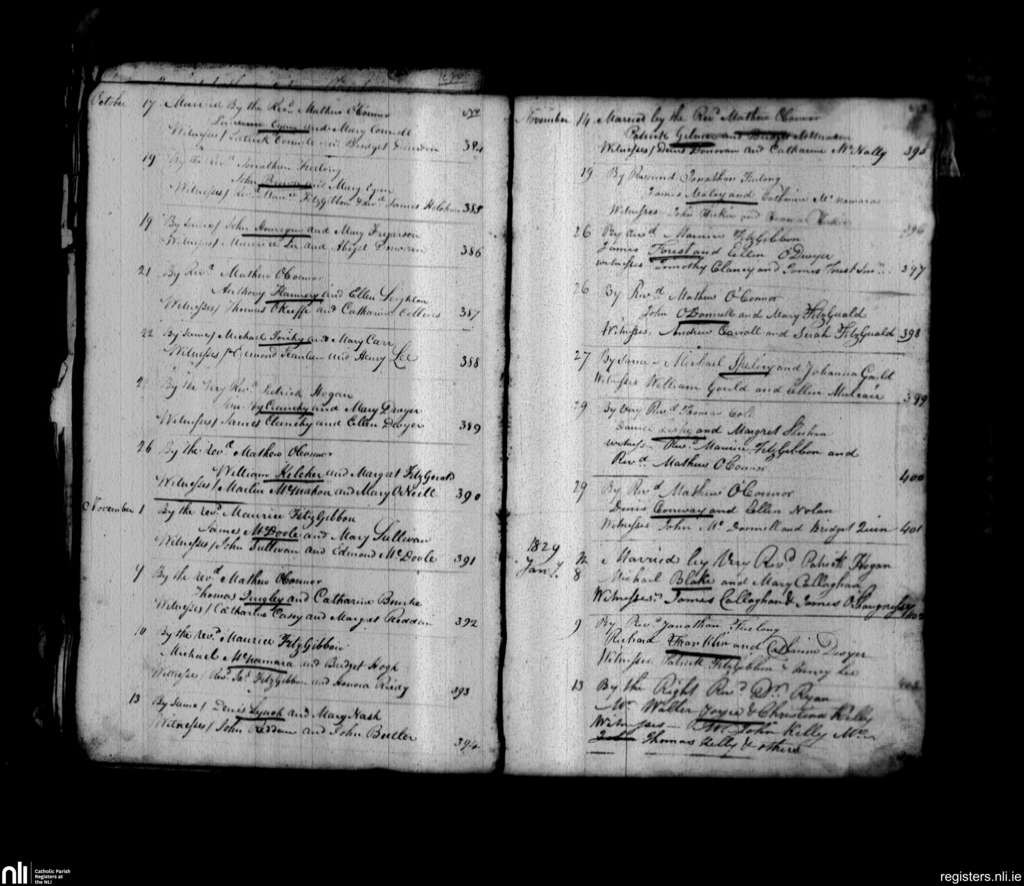 St. Michael's, Limerick city; County of Limerick; Diocese of Limerick. Marriages, Oct. 1828 to Jan. 1829