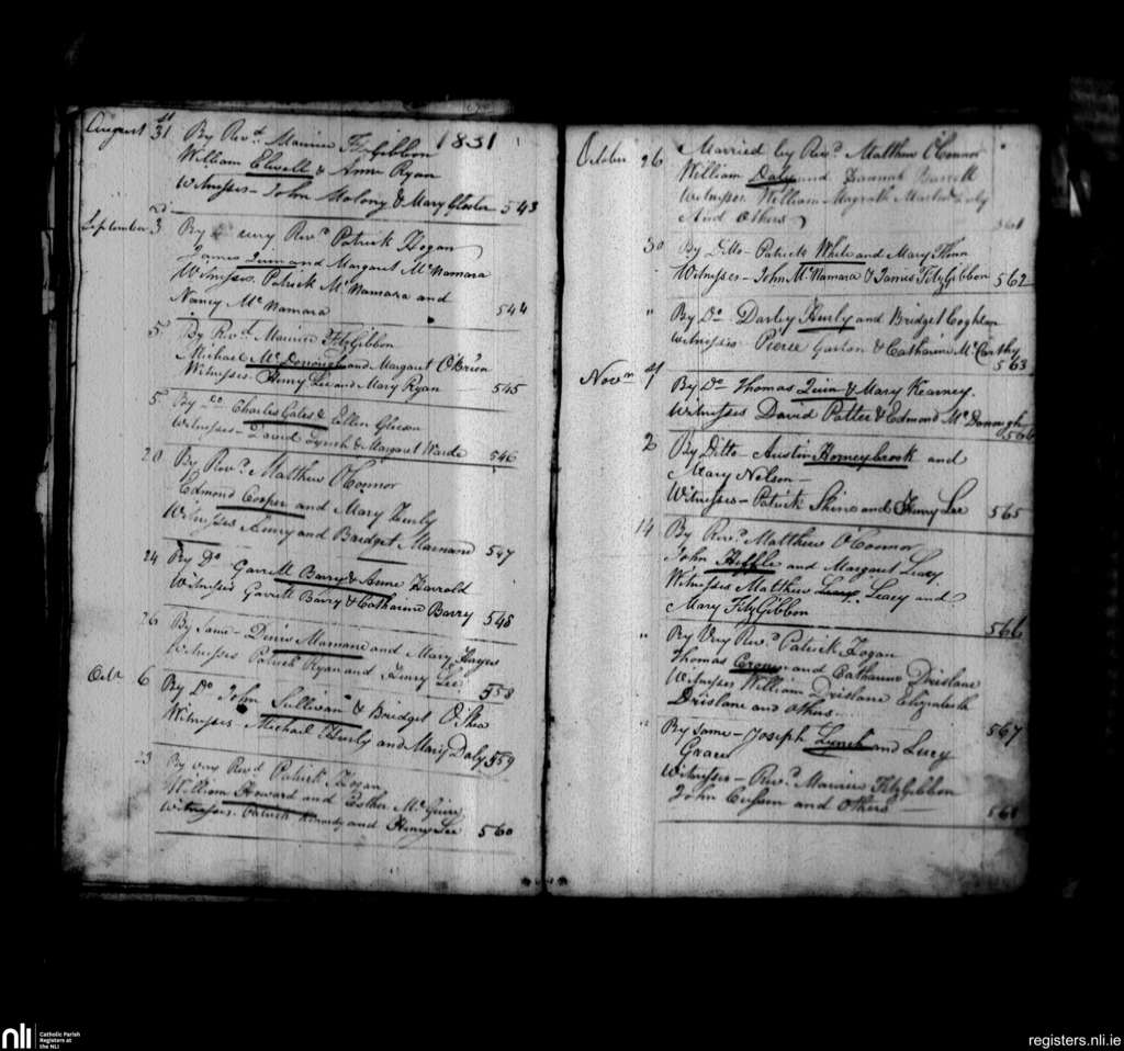 St. Michael's, Limerick city; County of Limerick; Diocese of Limerick. Marriages, Aug. 1830 to Nov. 1830