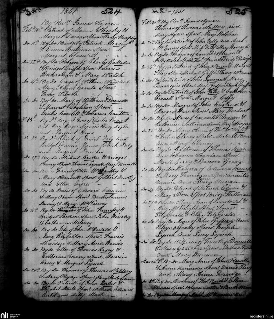St. Michael's, Limerick city; County of Limerick; Diocese of Limerick. Baptisms, Feb. 1851 to Mar. 1851