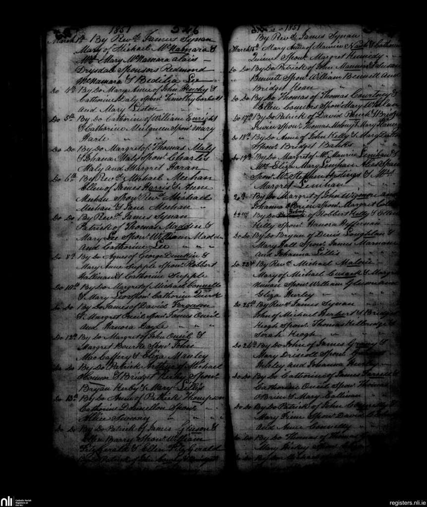 St. Michael's, Limerick city; County of Limerick; Diocese of Limerick. Baptisms, Mar. 1851