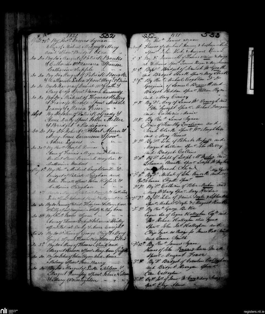 St. Michael's, Limerick city; County of Limerick; Diocese of Limerick. Baptisms, Apr. 1851 to May 1851