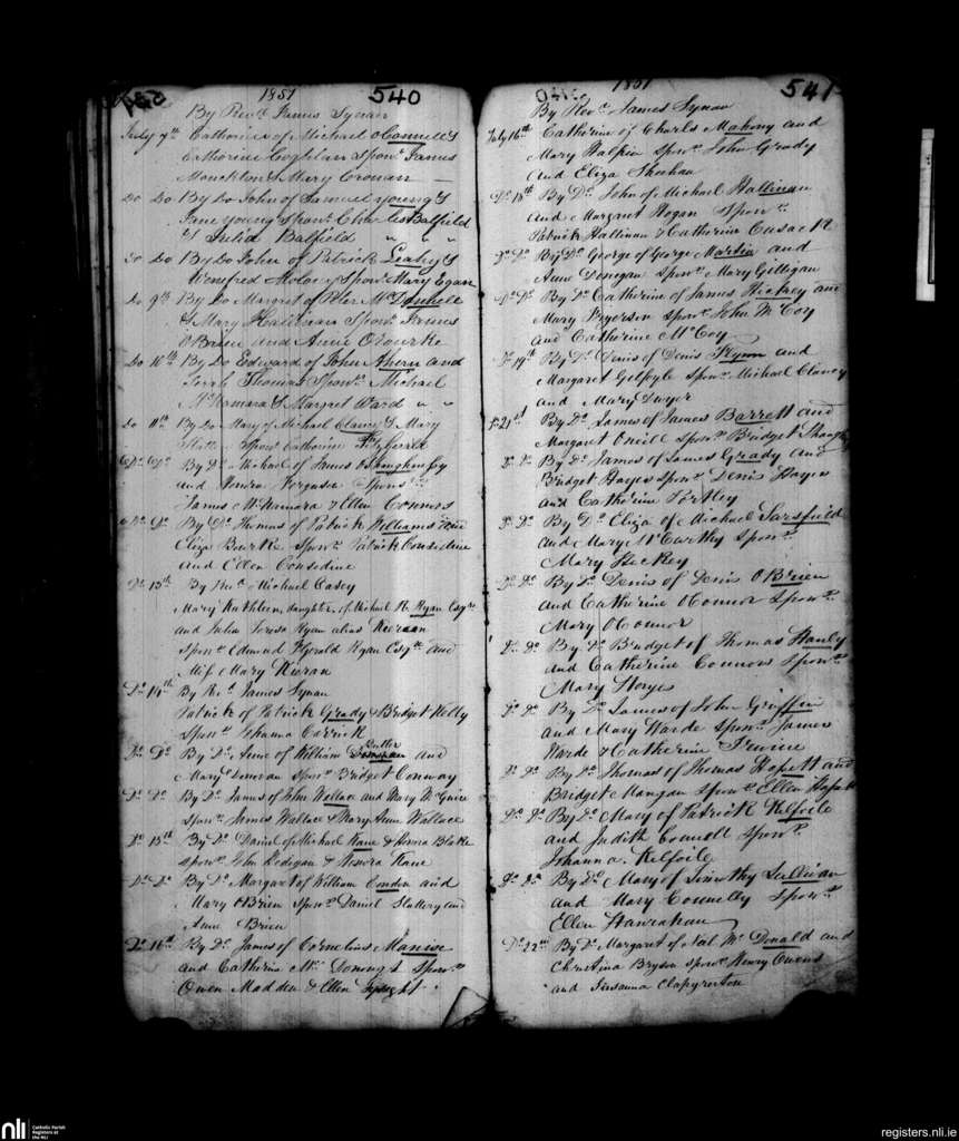St. Michael's, Limerick city; County of Limerick; Diocese of Limerick. Baptisms, July 1851