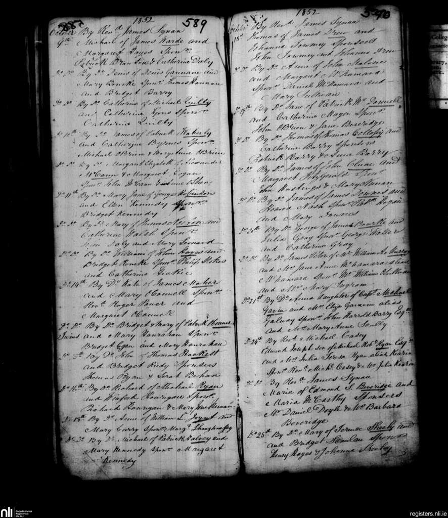 St. Michael's, Limerick city; County of Limerick; Diocese of Limerick. Baptisms, Oct. 1852