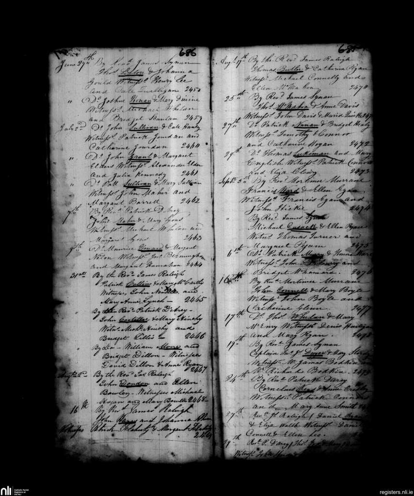 St. Michael's, Limerick city; County of Limerick; Diocese of Limerick. Marriages, June 1843 to Sep. 1843