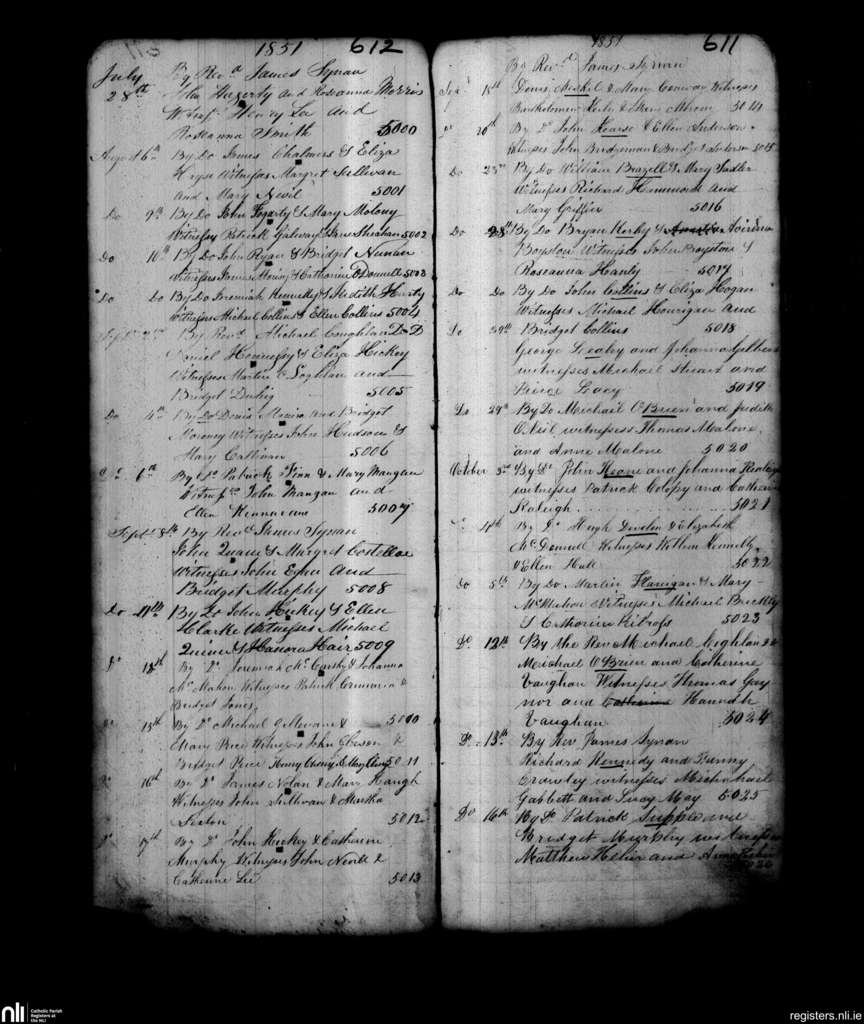 St. Michael's, Limerick city; County of Limerick; Diocese of Limerick. Marriages, July 1851 to Oct. 1851