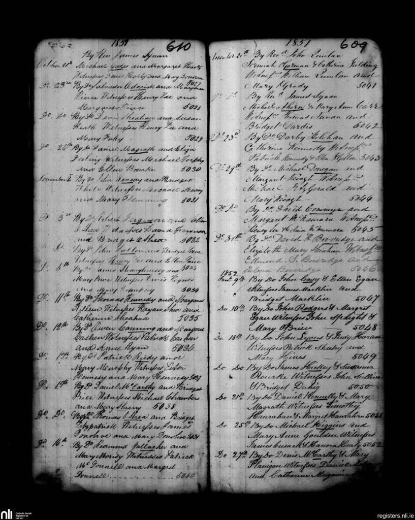 St. Michael's, Limerick city; County of Limerick; Diocese of Limerick. Marriages, Oct. 1851 to Jan. 1852