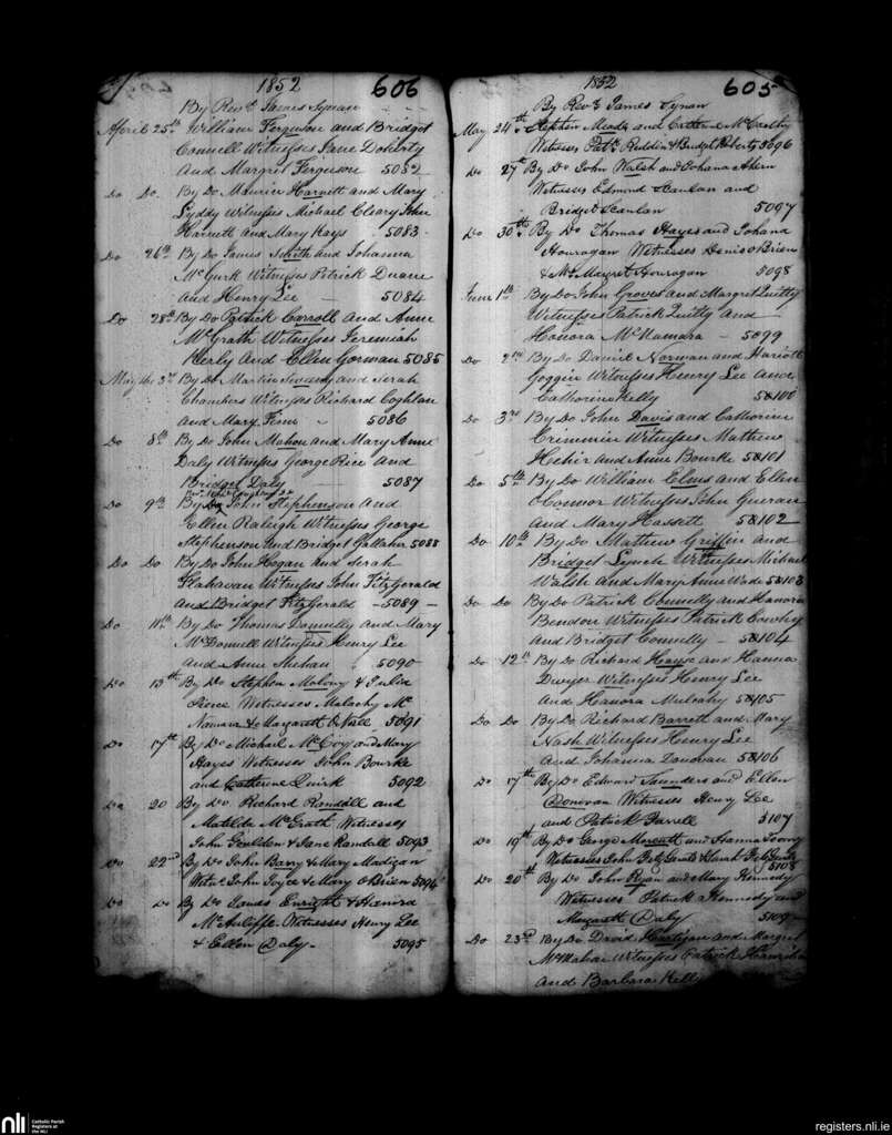 St. Michael's, Limerick city; County of Limerick; Diocese of Limerick. Marriages, Apr. 1852 to June 1852