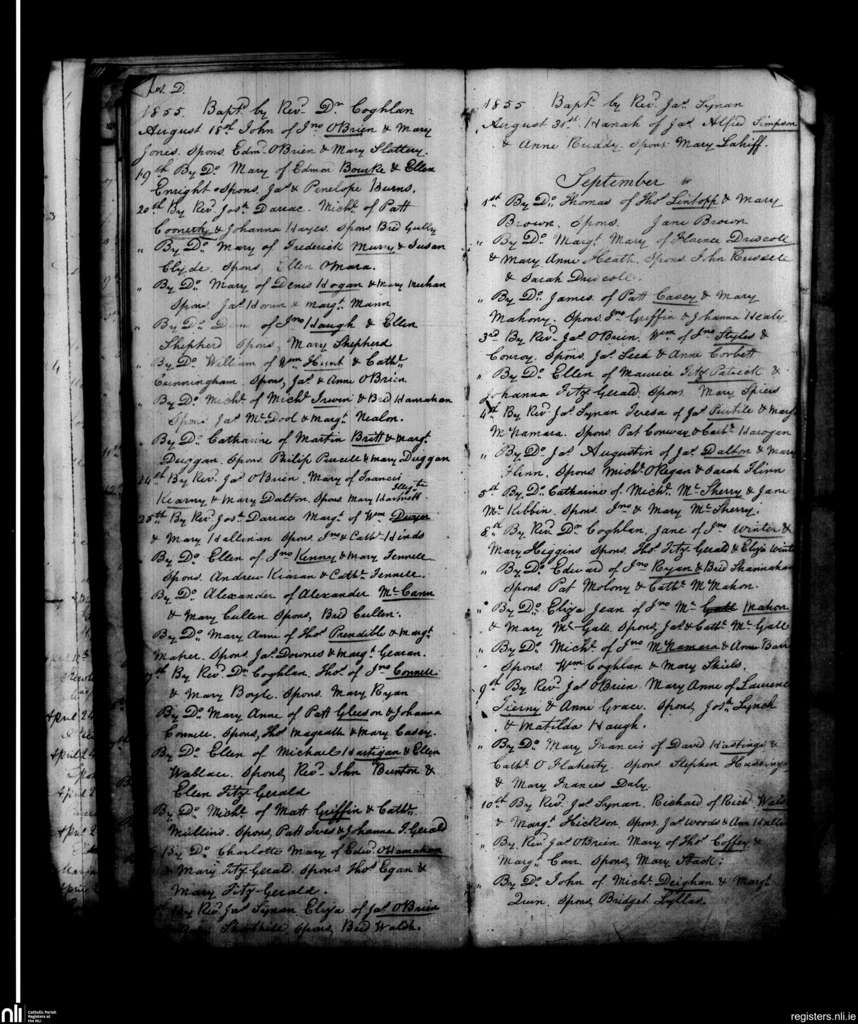 St. Michael's, Limerick city; County of Limerick; Diocese of Limerick. Baptisms, Aug. 1855 to Sep. 1855
