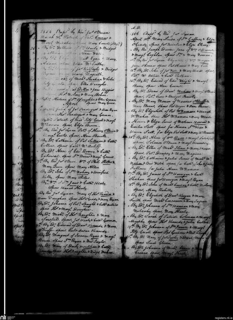St. Michael's, Limerick city; County of Limerick; Diocese of Limerick. Baptisms, Mar. 1856 to Apr. 1856