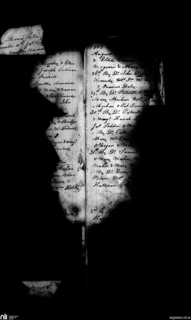 St. Michael's, Limerick city; County of Limerick; Diocese of Limerick. Marriages, Aug. 1862 to Sep. 1862