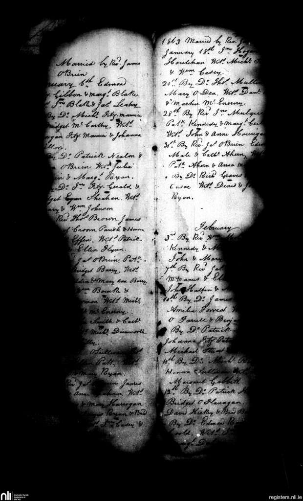 St. Michael's, Limerick city; County of Limerick; Diocese of Limerick. Marriages, Jan. 1863 to Feb. 1863