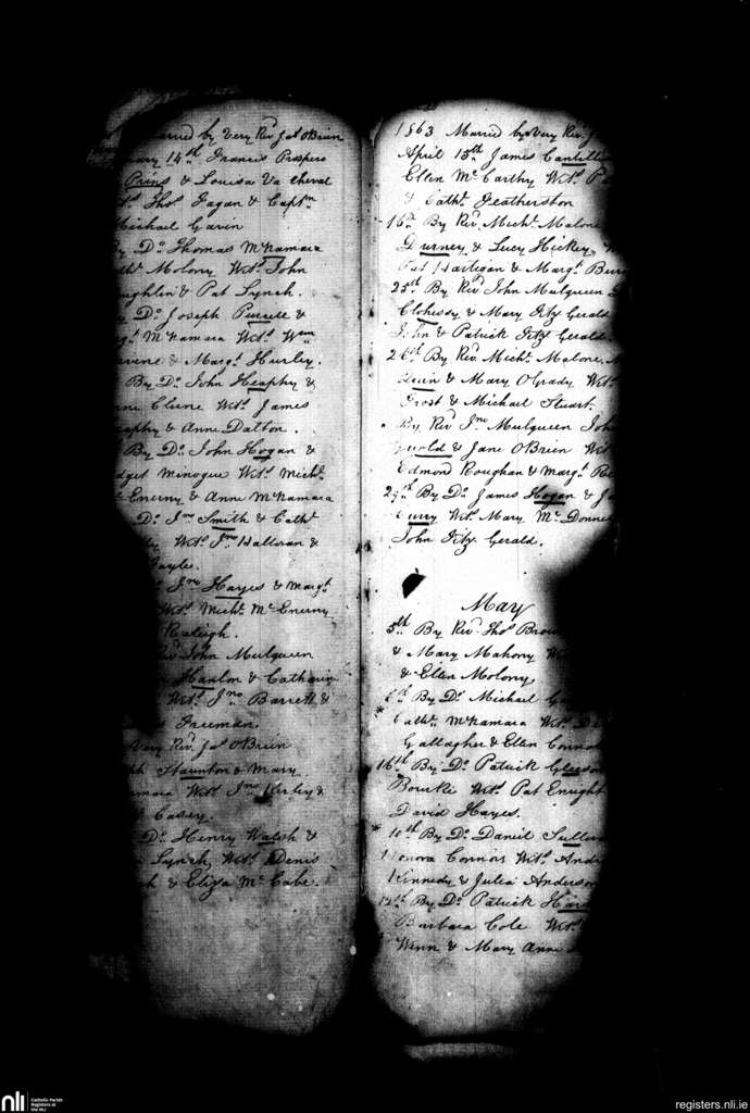 St. Michael's, Limerick city; County of Limerick; Diocese of Limerick. Marriages, Feb. 1863 to May 1863