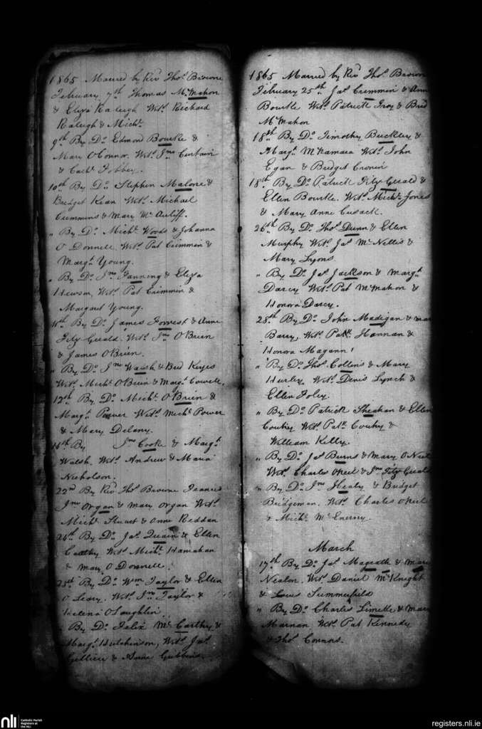 St. Michael's, Limerick city; County of Limerick; Diocese of Limerick. Marriages, Feb. 1865 to Mar. 1865