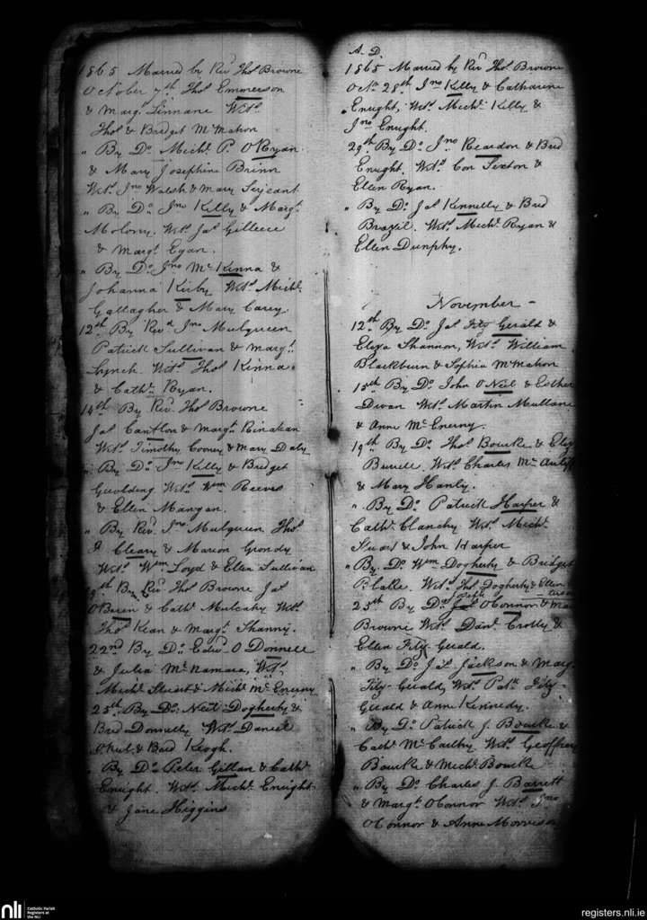 St. Michael's, Limerick city; County of Limerick; Diocese of Limerick. Marriages, Oct. 1865 to Nov. 1865