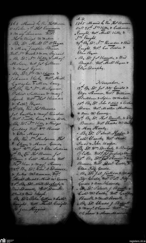 St. Michael's, Limerick city; County of Limerick; Diocese of Limerick. Marriages, Oct. 1865 to Nov. 1865