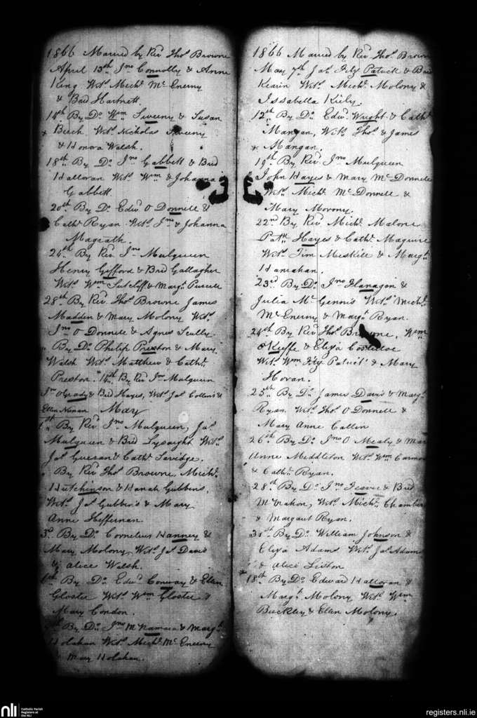 St. Michael's, Limerick city; County of Limerick; Diocese of Limerick. Marriages, Apr. 1866 to May 1866