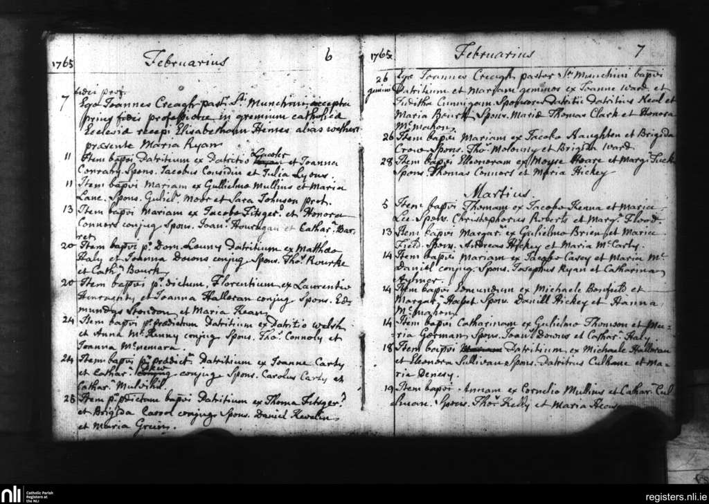 St. Munchin's, Limerick city; County of Limerick; Diocese of Limerick. Baptisms, Feb. 1765 to Mar. 1765