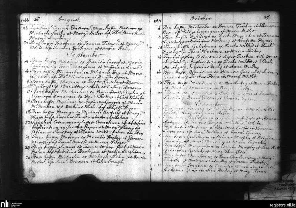 St. Munchin's, Limerick city; County of Limerick; Diocese of Limerick. Baptisms, Aug. 1766 to Nov. 1766