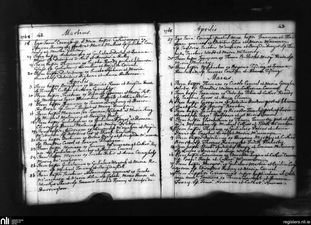 St. Munchin's, Limerick city; County of Limerick; Diocese of Limerick. Baptisms, Mar. 1768 to May 1768