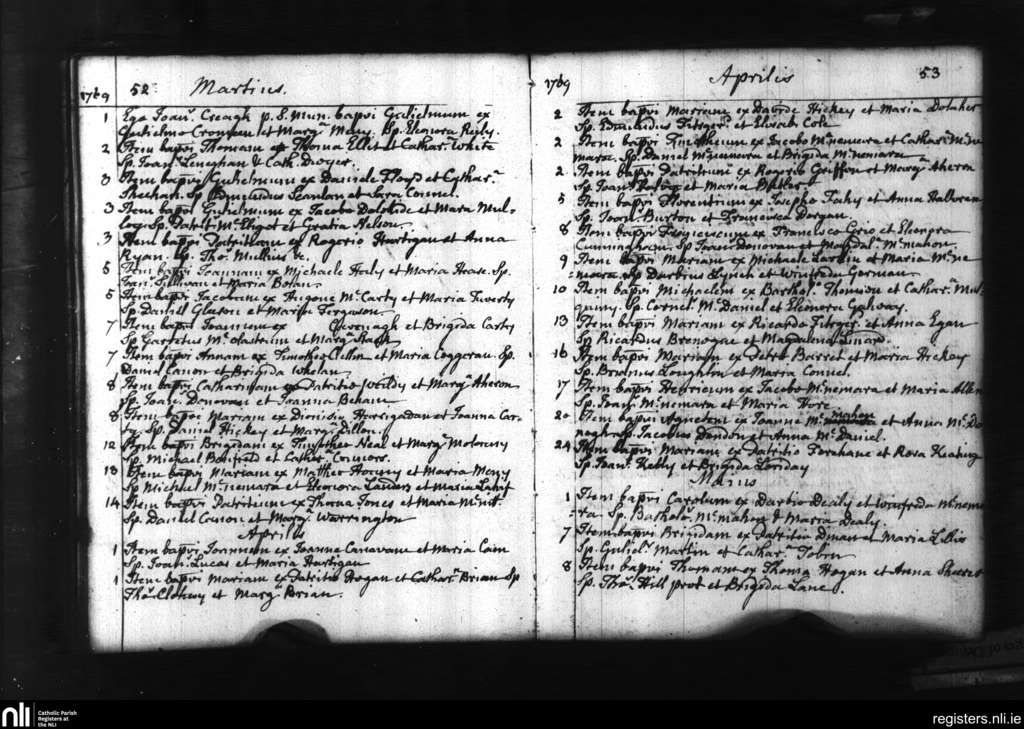 St. Munchin's, Limerick city; County of Limerick; Diocese of Limerick. Baptisms, Mar. 1769 to May 1769