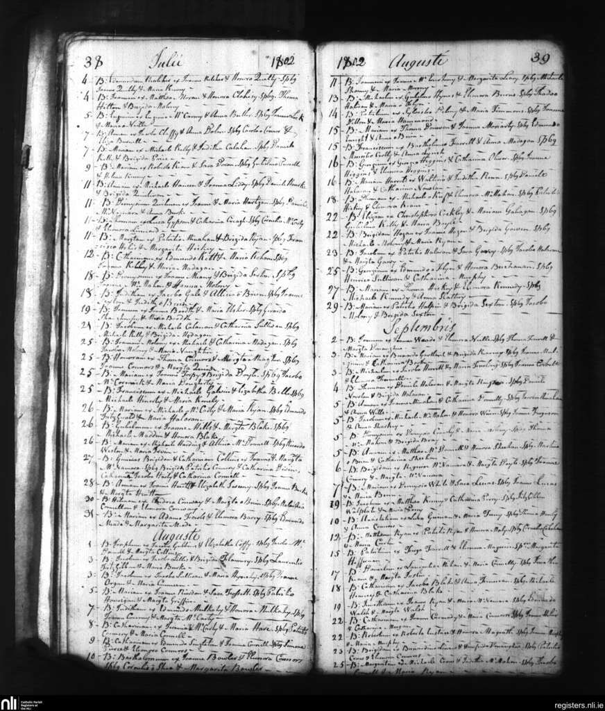 St. Munchin's, Limerick city; County of Limerick; Diocese of Limerick. Baptisms, July 1802 to Sep. 1802