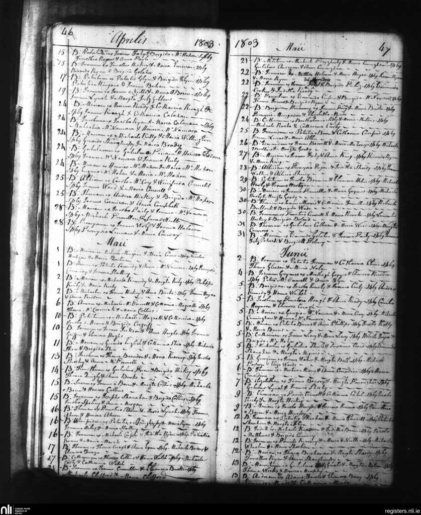 St. Munchin's, Limerick city; County of Limerick; Diocese of Limerick. Baptisms, Apr. 1803 to June 1803