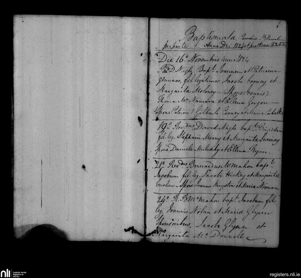 St. Munchin's, Limerick city; County of Limerick; Diocese of Limerick. Baptisms, Nov. 1824