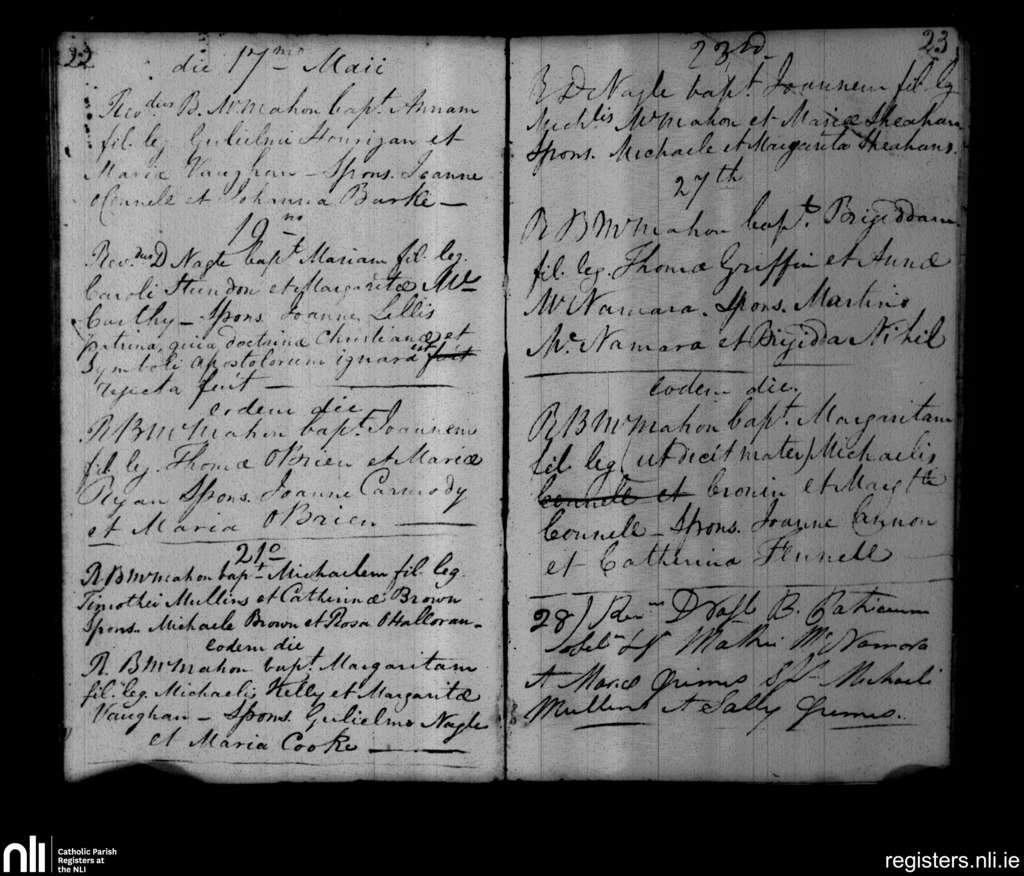 St. Munchin's, Limerick city; County of Limerick; Diocese of Limerick. Baptisms, May 1825