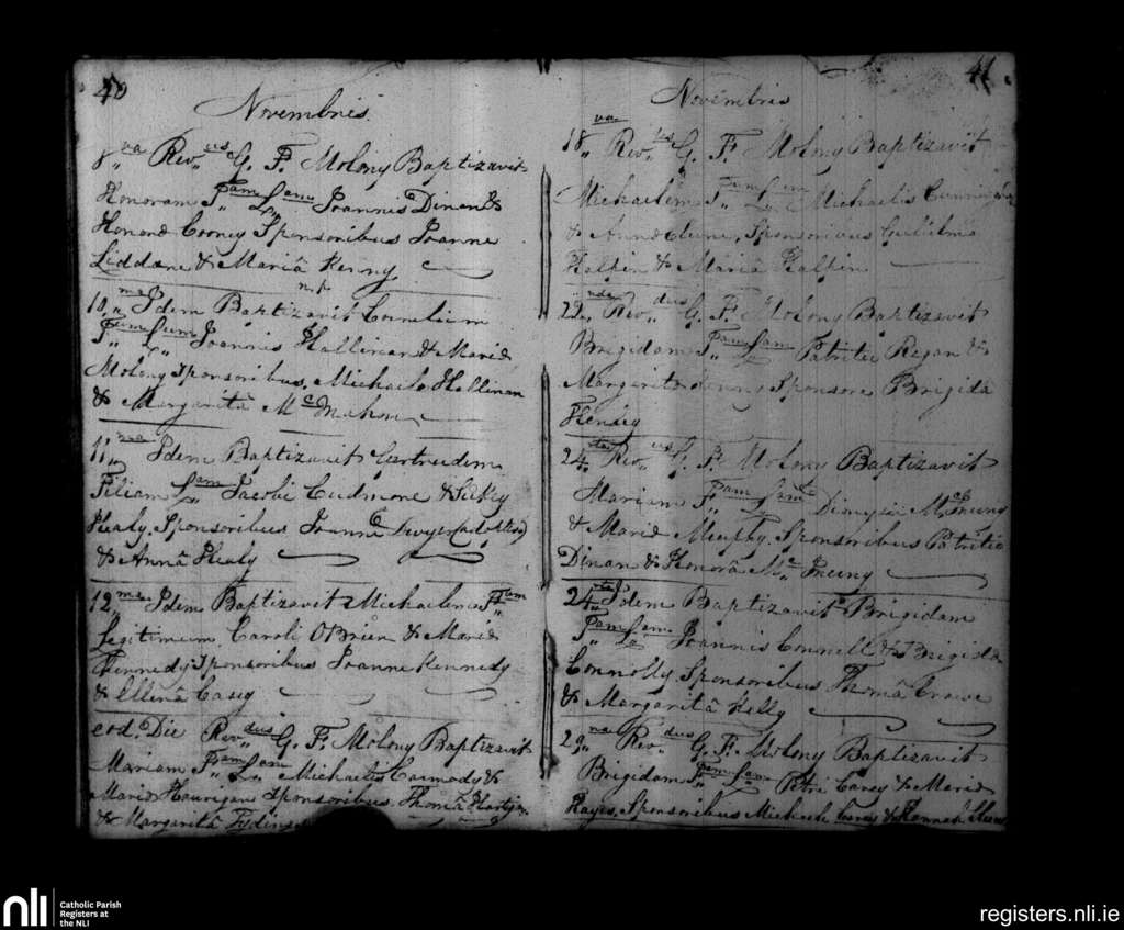 St. Munchin's, Limerick city; County of Limerick; Diocese of Limerick. Baptisms, Nov. 1825