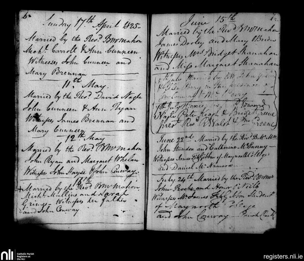 St. Munchin's, Limerick city; County of Limerick; Diocese of Limerick. Marriages, Apr. 1825 to July 1825