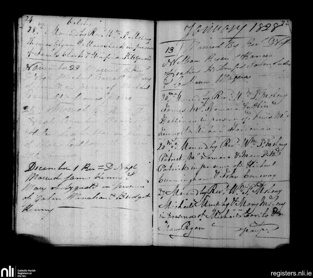 St. Munchin's, Limerick city; County of Limerick; Diocese of Limerick. Marriages, Oct. 1827 to Jan. 1828