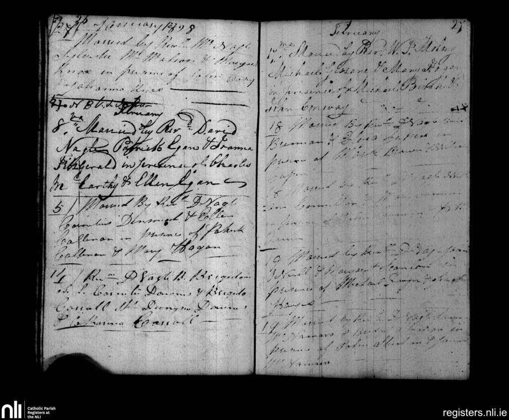 St. Munchin's, Limerick city; County of Limerick; Diocese of Limerick. Marriages, Jan. 1828 to Feb. 1828