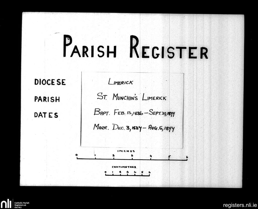 St. Munchin's, Limerick city; County of Limerick; Diocese of Limerick. Baptisms, Marriages