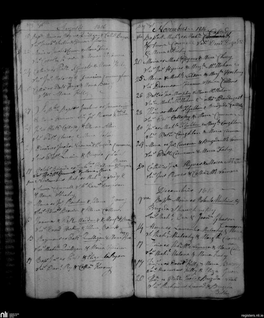 St. Patrick's, Limerick city; County of Limerick; Diocese of Limerick. Baptisms, Aug. 1816 to Dec. 1816