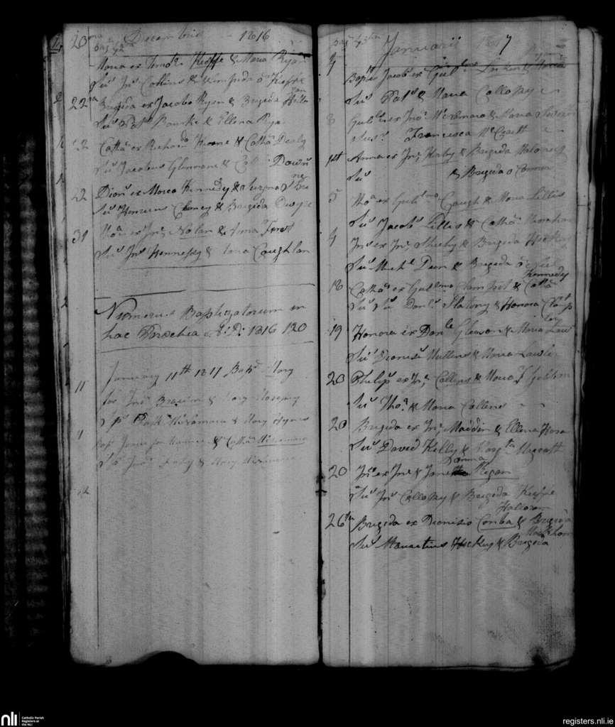 St. Patrick's, Limerick city; County of Limerick; Diocese of Limerick. Baptisms, Dec. 1816 to Jan. 1817