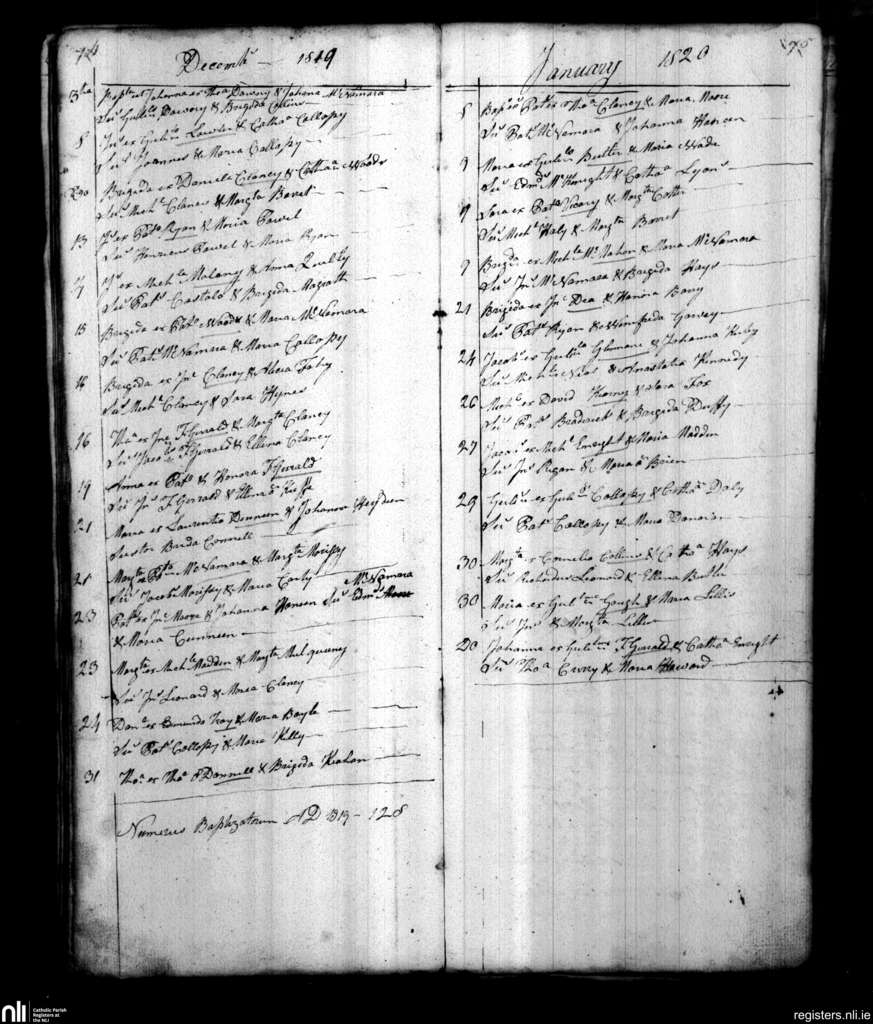 St. Patrick's, Limerick city; County of Limerick; Diocese of Limerick. Baptisms, Dec. 1819 to Jan. 1820