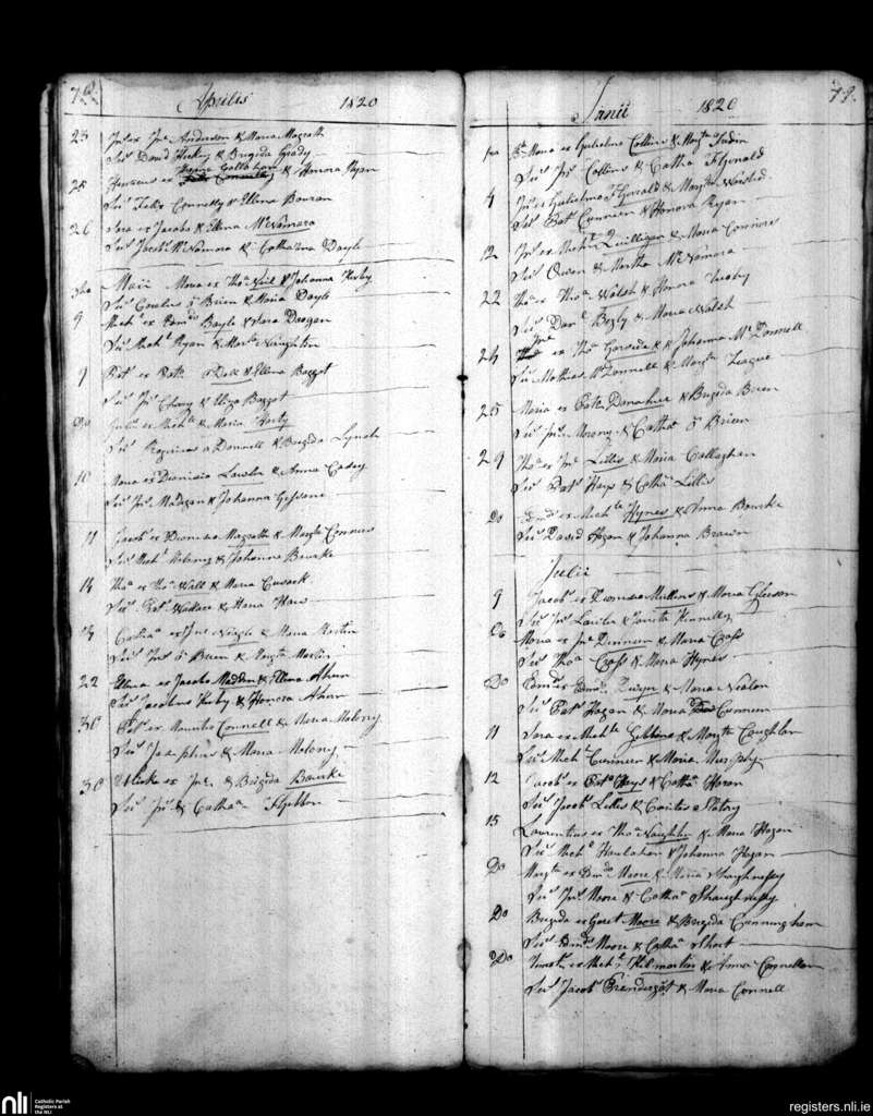 St. Patrick's, Limerick city; County of Limerick; Diocese of Limerick. Baptisms, Apr. 1820 to July 1820