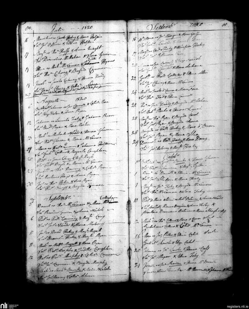 St. Patrick's, Limerick city; County of Limerick; Diocese of Limerick. Baptisms, July 1820 to Oct. 1820