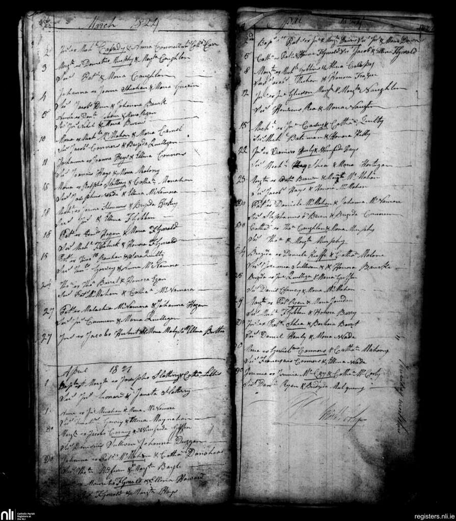 St. Patrick's, Limerick city; County of Limerick; Diocese of Limerick. Baptisms, Mar. 1824 to Apr. 1824