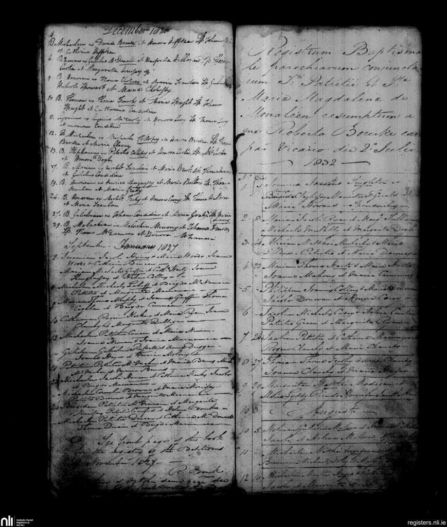 St. Patrick's, Limerick city; County of Limerick; Diocese of Limerick. Baptisms, Dec. 1826 to Aug. 1832
