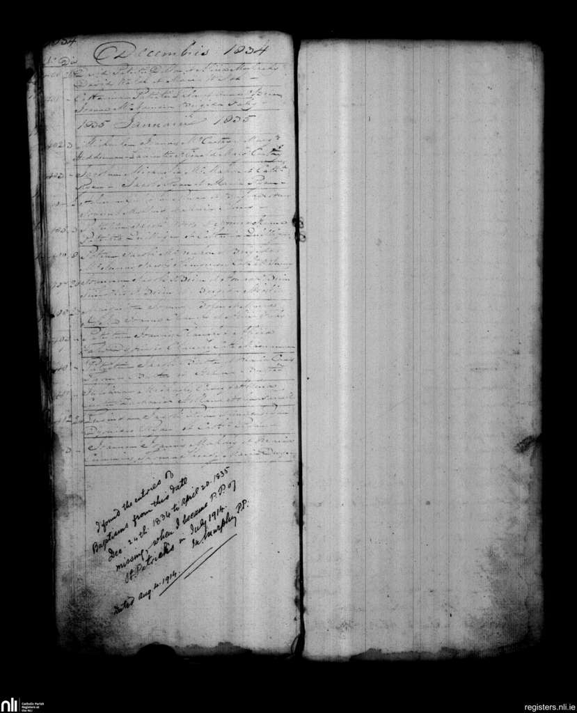 St. Patrick's, Limerick city; County of Limerick; Diocese of Limerick. Baptisms, Dec. 1834 to Jan. 1835
