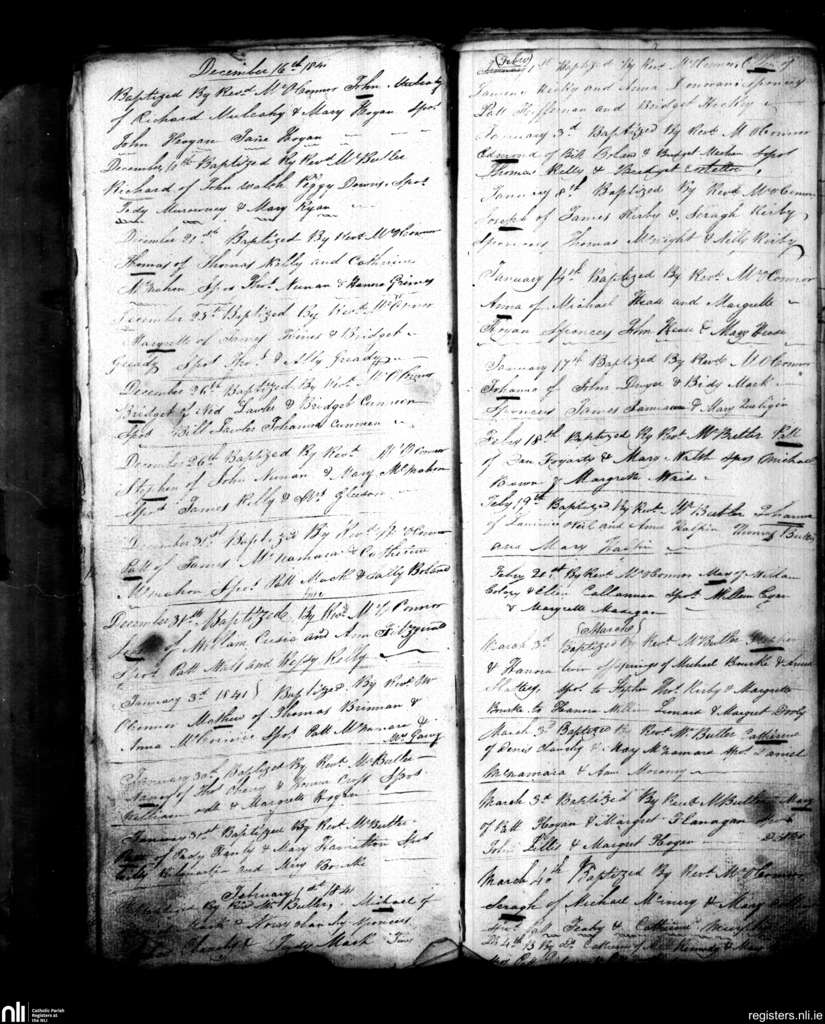 St. Patrick's, Limerick city; County of Limerick; Diocese of Limerick. Baptisms, Dec. 1840 to Mar. 1841