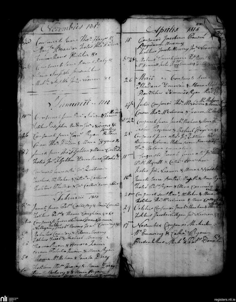 St. Patrick's, Limerick city; County of Limerick; Diocese of Limerick. Marriages, Nov. 1817 to Nov. 1818