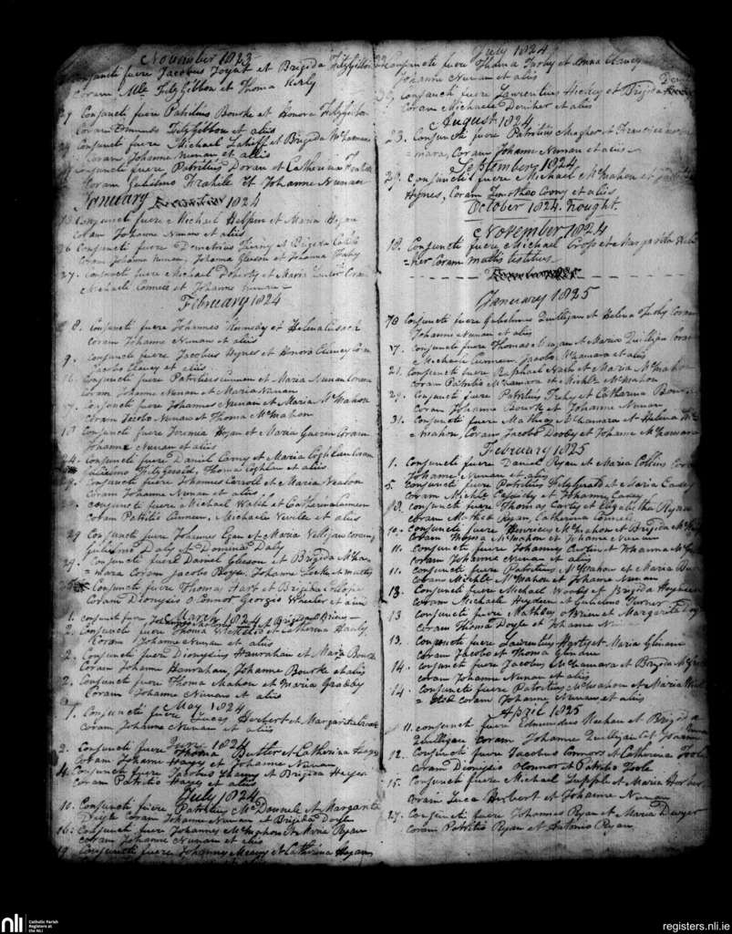 St. Patrick's, Limerick city; County of Limerick; Diocese of Limerick. Marriages, Nov. 1823 to Apr. 1825