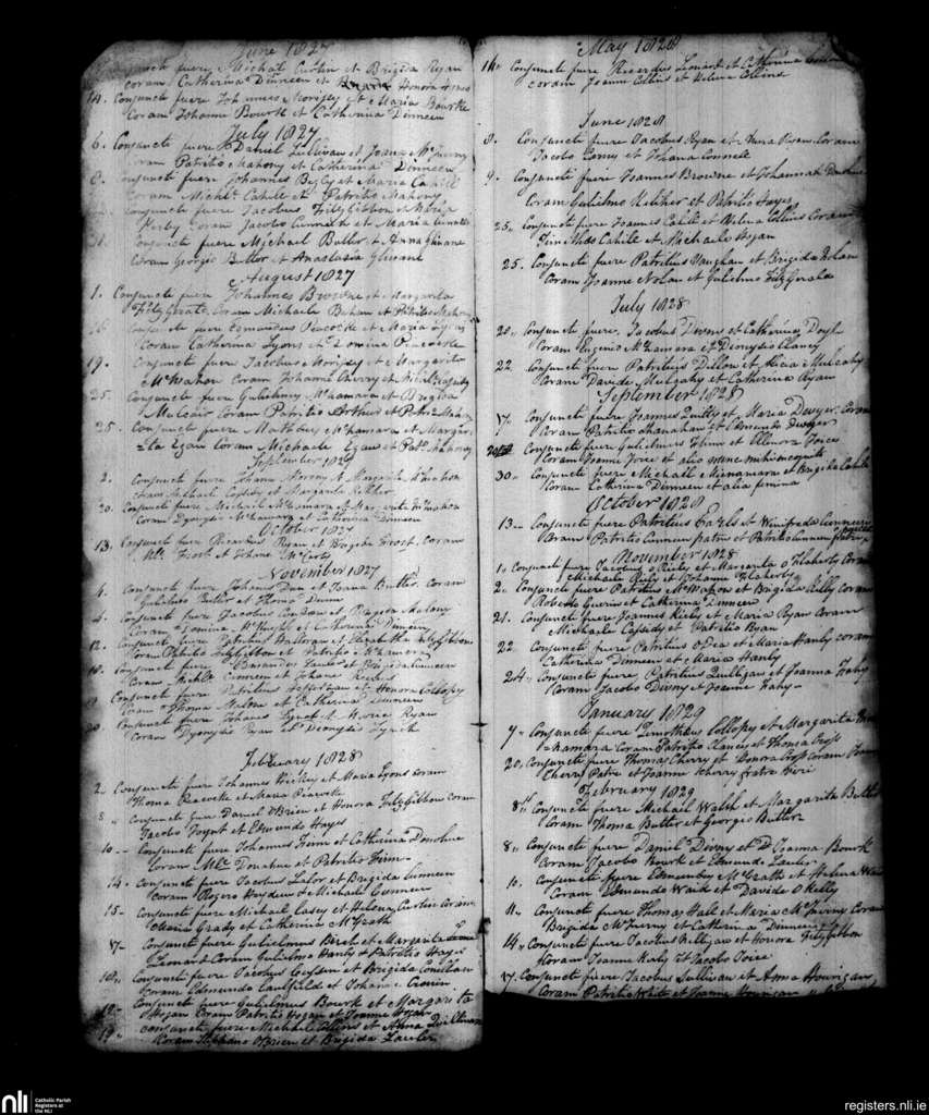 St. Patrick's, Limerick city; County of Limerick; Diocese of Limerick. Marriages, June 1827 to Feb. 1829