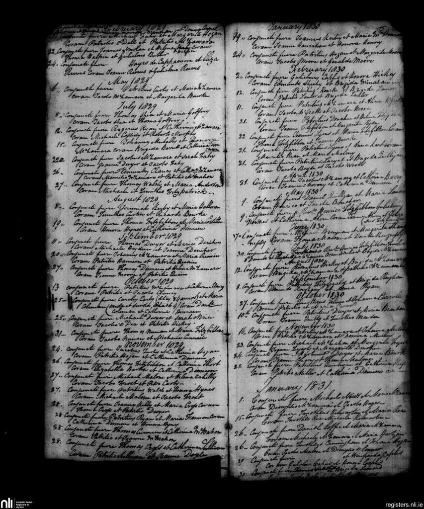 St. Patrick's, Limerick city; County of Limerick; Diocese of Limerick. Marriages, Feb. 1829 to Jan. 1831