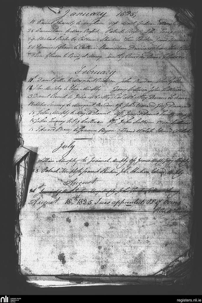 Ballincollig; County of Cork; Diocese of Cork and Ross. Marriages, Jan. 1825 to Aug. 1825