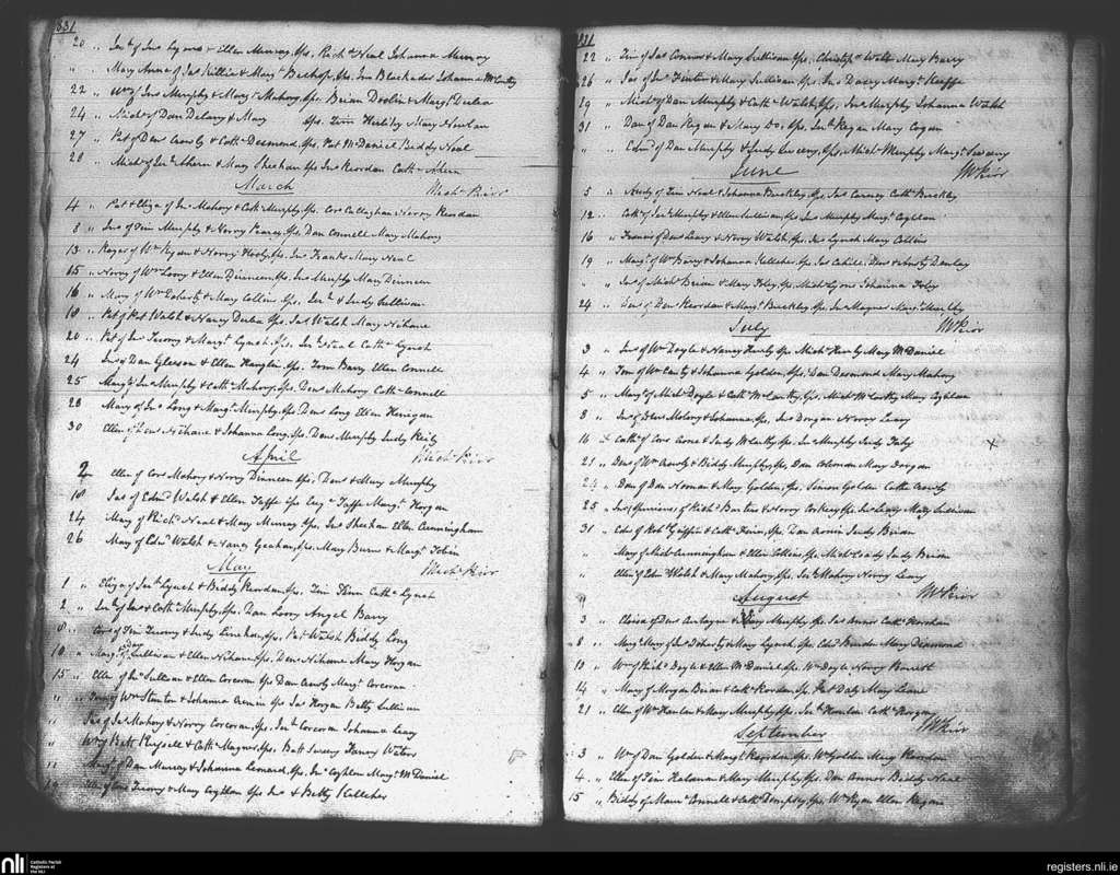 Ballincollig; County of Cork; Diocese of Cork and Ross. Baptisms, Feb. 1831 to Sep. 1831