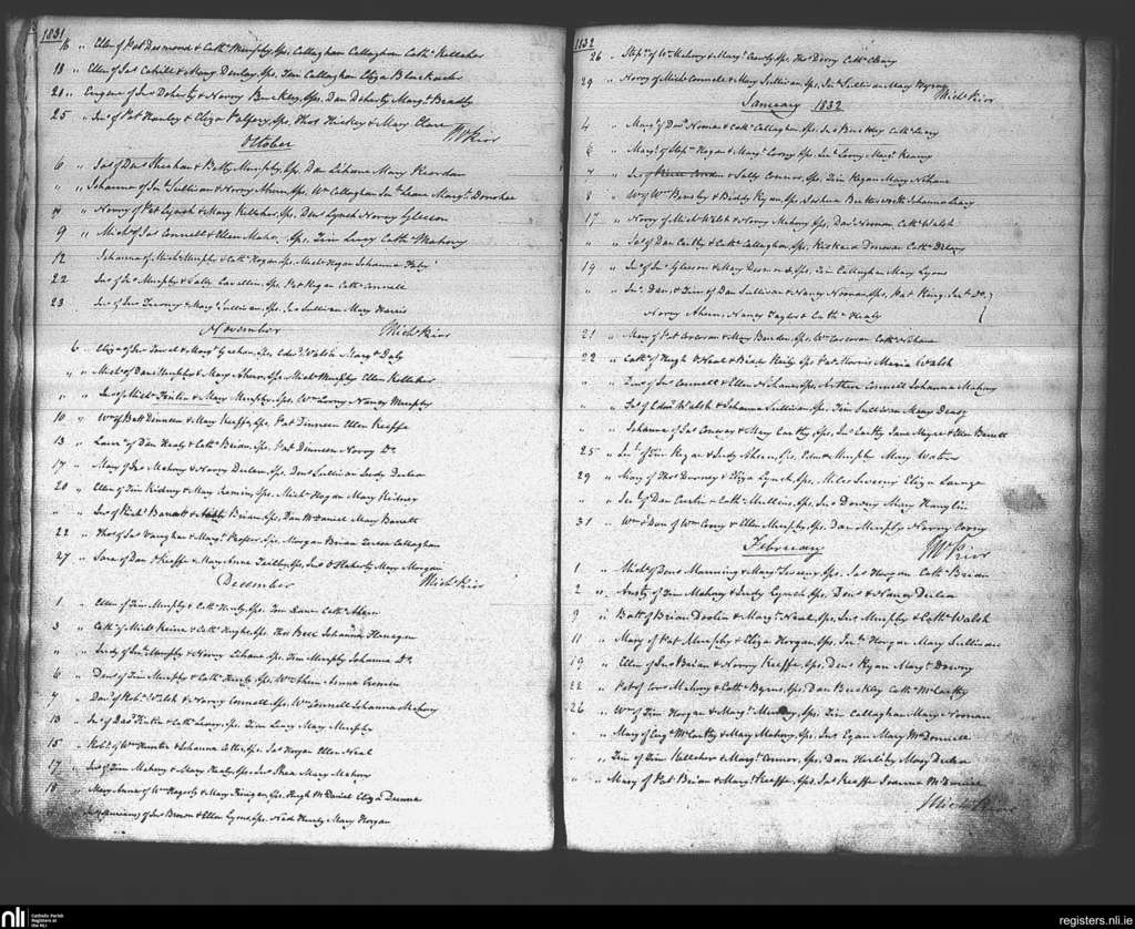 Ballincollig; County of Cork; Diocese of Cork and Ross. Baptisms, Sep. 1831 to Feb. 1832